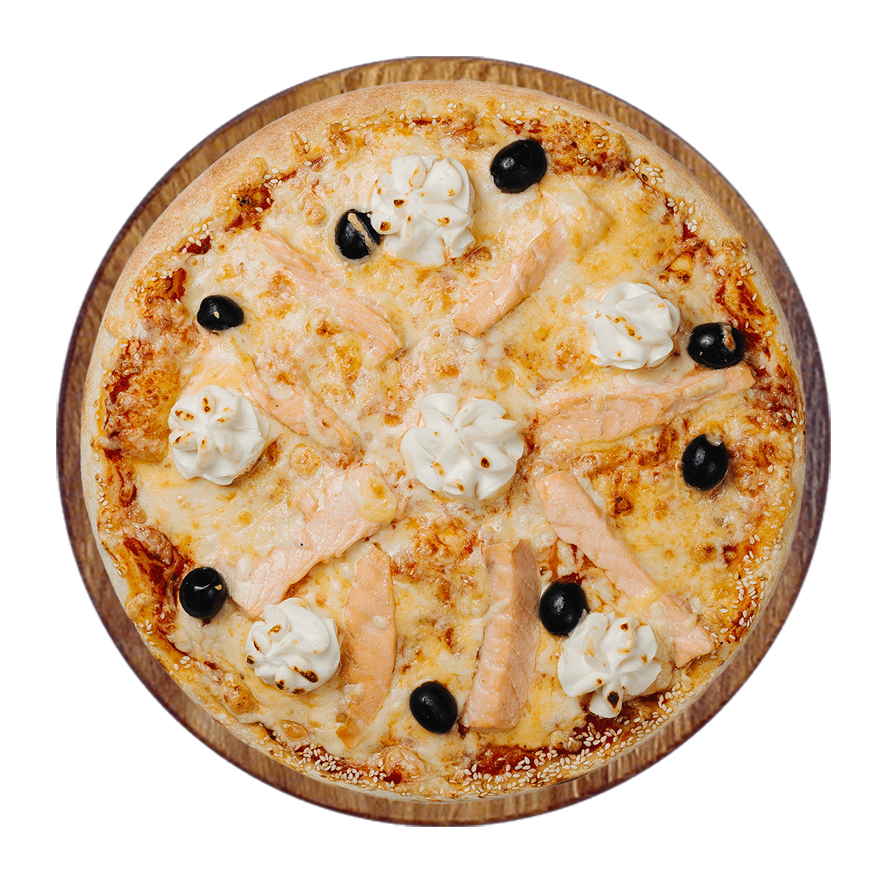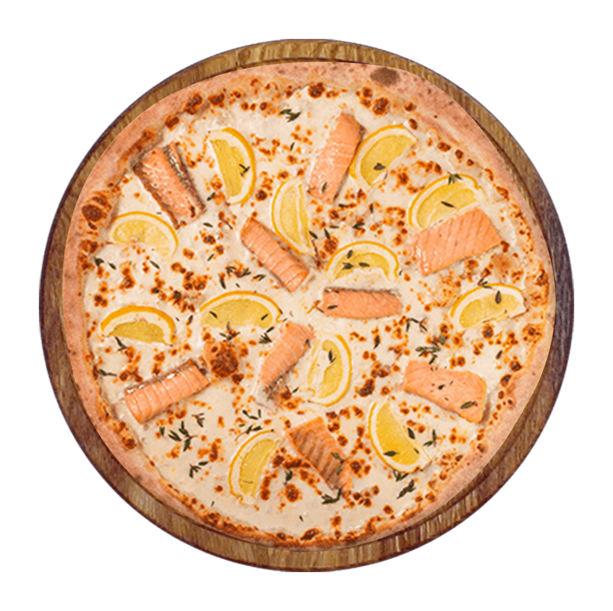 Crème fraîche, mozzarella, saumon fumé, citron, origan.